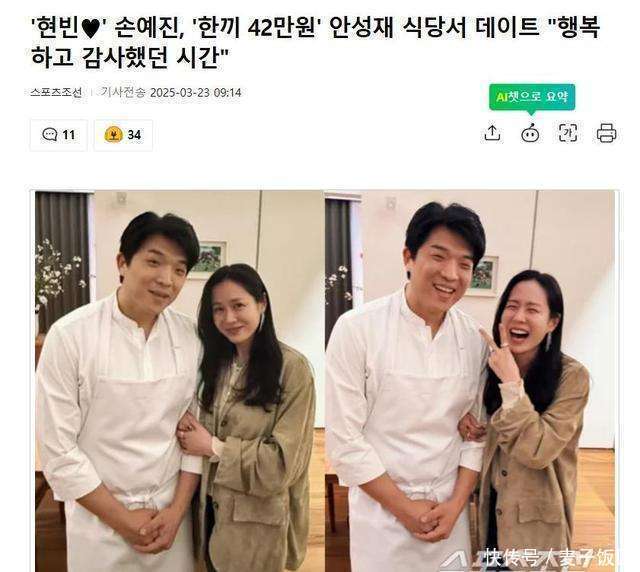 更值得一提的是,孙艺珍和餐厅主厨安成宰的互动十分亲密。她挽着安成宰的手臂,俏皮地摆出V字手势。这一画面让众多网友大呼养眼,不少人感叹孙艺珍不愧是女神,哪怕是和主厨合影这样的场景,都能拍出满满的CP感。这也从侧面反映出孙艺珍的人格魅力,她能够在不同的人面前都展现出自己独特而迷人的气质。